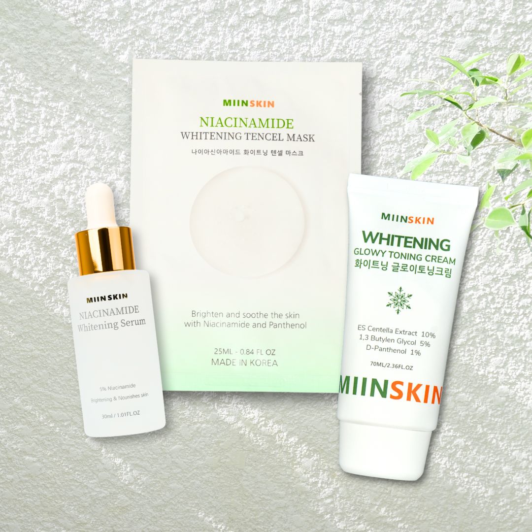 Sau một thời gian dài loay hoay với nhiều cách dưỡng trắng sáng khác nhau nhưng hiệu quả không ổn định, mình bắt đầu chú ý nhiều hơn đến các dòng mỹ phẩm Hàn Quốc chính hãng, nổi tiếng với định hướng phục hồi – làm sáng da bền vững, an toàn cho da nhạy cảm. Trong đó, combo dưỡng trắng nhà MIINSKIN gồm mặt nạ Tencel cấp ẩm, sáng da Niacinamide, tinh chất dưỡng trắng MIINSKIN 5% Niacinamide và kem dưỡng da nâng tone, ngừa nếp nhăn là bộ sản phẩm mình quyết định sử dụng xuyên suốt trong 2 tháng để theo dõi hiệu quả cải thiện tăng sắc tố.