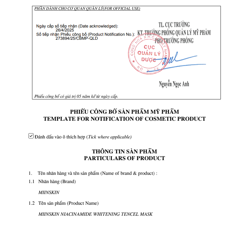 (Mặt nạ tencel sáng da Niacinamide)